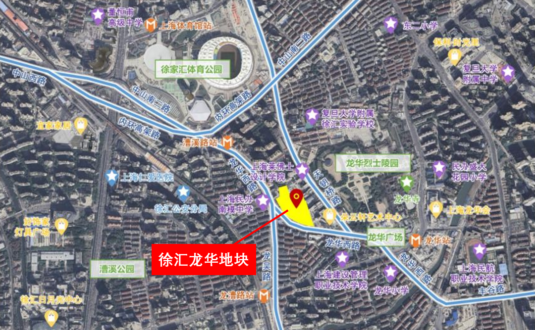 地块面积不大,容积率1.59,计容建面约3.48万㎡,但位置还算优越,位于徐汇内中环,龙华西路东侧,上海师大附中附属龙华中学西侧;直线距离11号线龙华站约800米。