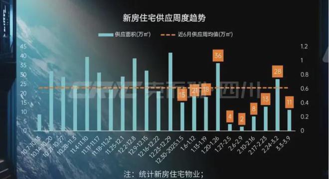 近日据克而瑞监测报告显示,当前大成都范围的新房住宅供应已呈现出“供不应求”状态,且已持续了5个月。此外,年内新房供应量多周处于低位,第10周供应低于均值线51%。