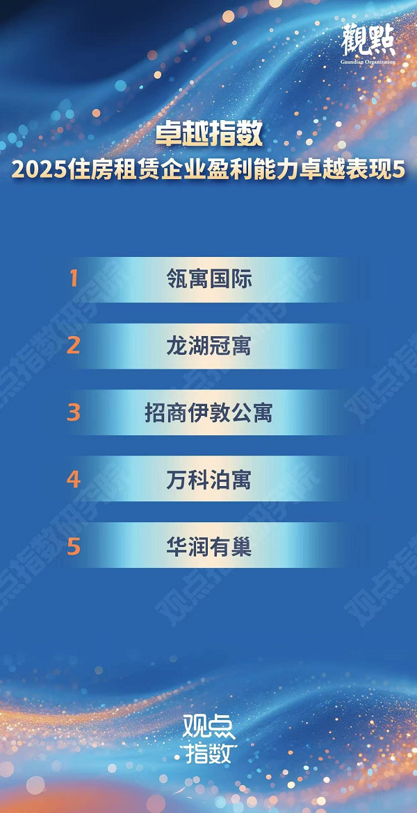 观点指数研究院在对行业进行长期跟踪的基础上,综合考察住房租赁企业2024年度的运营模式、财务情况、管理、品牌、创新等多个方面,发布“卓越指数?2025住房租赁卓越表现”系列研究成果,持续为行业提供榜样的力量。