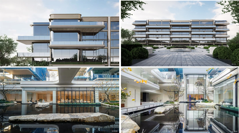 · 园林景观:杭州大家·咏印明庐项目通过三级立体抬升形成悬浮于运河之上的“空中花园”,营造独特的观景视角。