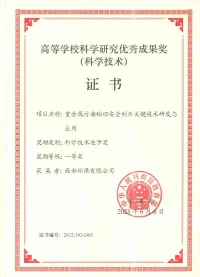 近日,2022年度国家高等学校科学研究优秀成果奖(科学技术)奖项评定颁布,鸿达兴业子公司西部环保有限公司凭借“重金属污染稻田安全利用关键技术研发与利用”项目,荣获中华人民共和国教育部科学技术进步一等奖!该奖项主要授予围绕国家战略需求、经济社会发展需要、世界科技前沿等方面开展科技创新和成果转化,并做出突出贡献的单位和个人。此次获奖,是对鸿达兴业及西部环保多年来坚持土壤修复改良研究的肯定和认可,也展现了鸿达兴业在农业领域的科研实力。