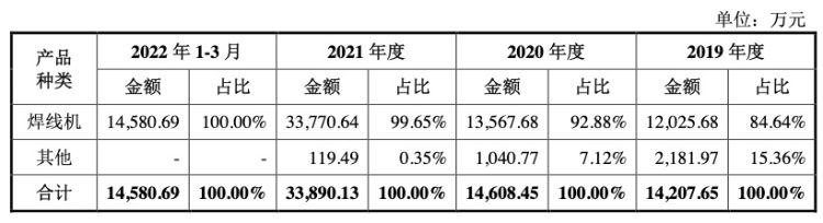 招股书指出,报告期内,公司主营业务收入主要来源于焊线机的销售,占比较高。公司焊线机的销售收入较大程度上决定了公司的盈利水平。未来若焊线机市场出现竞争加剧、产品价格下降或需求下降等情形,则公司经营业绩将受到不利影响。