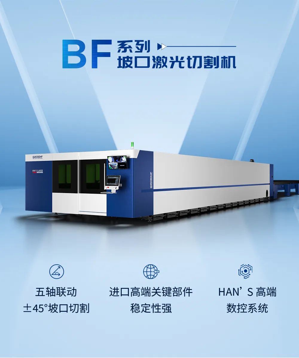 BF系列设备采用大族激光自主开发的AB轴垂直实时检测、一键回零校正、板材三维坐标系自适应切换等坡口切割专用功能,坡口切割一次成型,切割精度高,坡口工件可以达到严丝合缝的效果,有效保证后续焊接件的结构稳定性,推动宁夏森源重工的产品优化升级、助力企业高质量发展。
