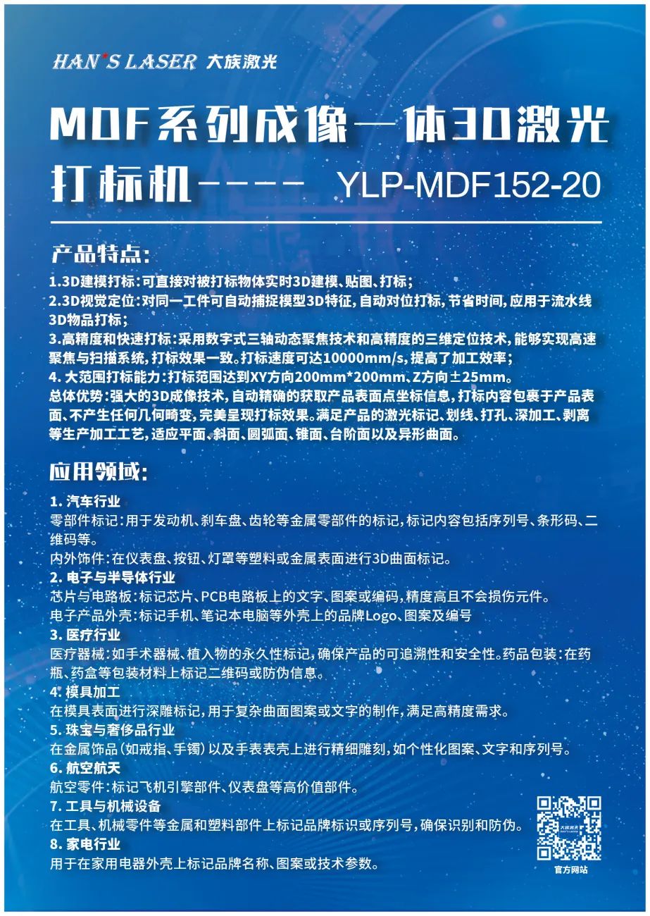 新品首发不仅可以展示企业在研发方面的雄厚实力,更能直接体现其不断追求技术创新、推动行业持续发展的企业精神。值得一提的是,本次展会期间大族激光将推出众多新品及首展展品,包括蓝光激光器、“黑晶”系列手持激光焊接机以及MDF系列成像一体3D激光打标机等。