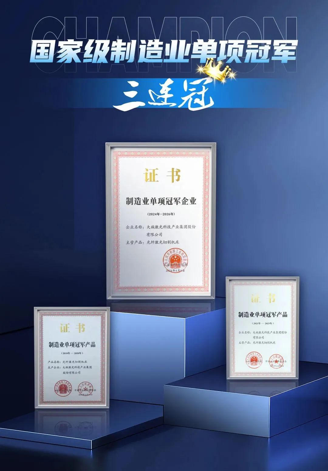 智能装备集团于2009年推出第一台光纤激光切割机,十余年依托研发、持续创新,成就多项核心技术与丰富应用经验,连续三届荣获工信部全国制造业单项冠军(产品)认定(2018年-2020年、2021年-2023年、2024年-2026年),光纤激光切割机获评“中国好设计奖”、中国机床工具工业协会“产品质量十佳”、“自主创新十佳”等殊荣。