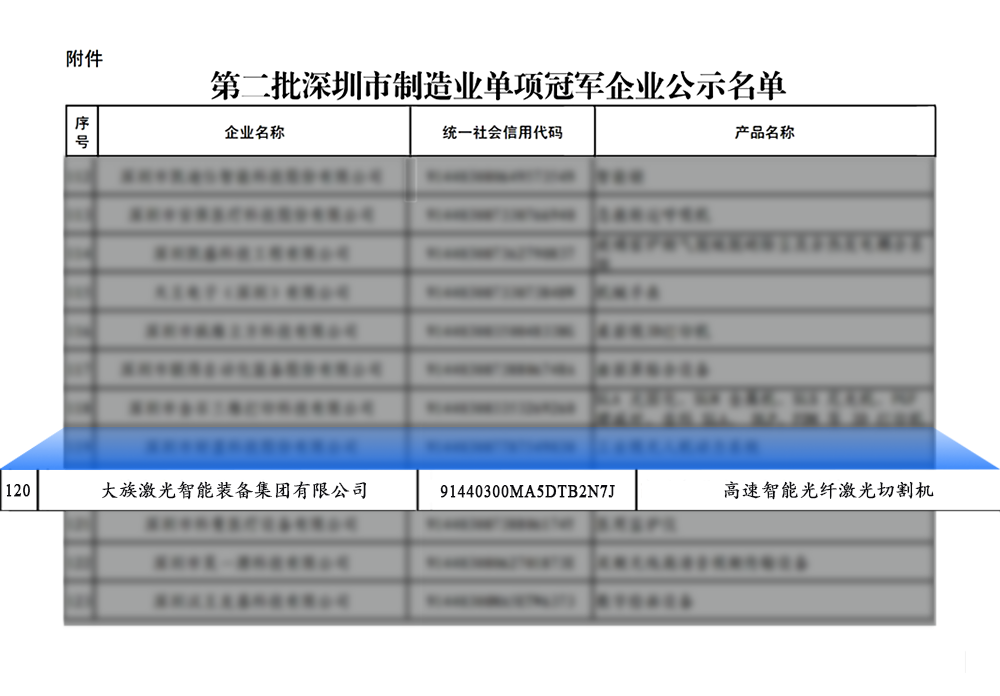 近日,深圳市工业和信息化局正式发布《关于第二批深圳市制造业单项冠军企业公示的通知》,大族激光旗下全资子公司大族激光智能装备集团有限公司(以下简称:智能装备集团)核心产品“高速智能光纤激光切割机”入选榜单,高端装备智造实力再获权威认可!