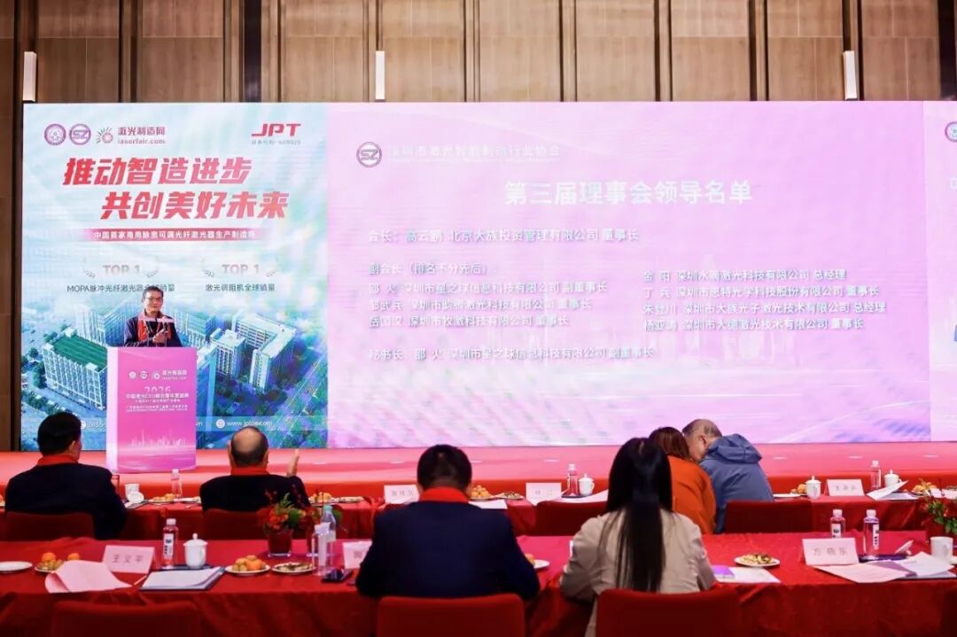大会现场,同期选举和公布第三届理事会全新领导名单,北京大族投资管理有限公司董事长高云鹏担任会长,大族激光旗下子公司深圳市大族光子激光技术有限公司(简称:大族光子)总经理朱登川任副会长。这一组织架构的深化,进一步巩固了大族激光在行业治理与协同发展中的枢纽地位。