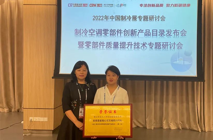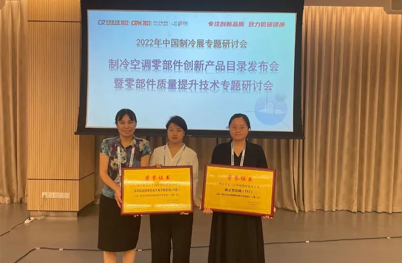 会上,中国制冷空调工业协会副秘书长刘晓红、制冷系统零部件分会会长张秀平为获奖单位颁奖。