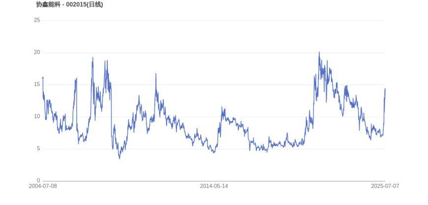 从上市首日至今,协鑫能科的市值实现了27.85倍的增长,显示出长期投资价值。2022年5月17日,协鑫能科的市值巅峰达到314.93亿元,股价也顺应升至19.4元。而至7月7日收盘,协鑫能科的股价为14.39元,市值为233.60亿元,相比峰值时期市值减少81.33亿元,市值蒸发了25.82%。