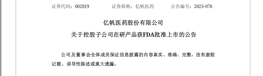 今日(11月17日),亿帆医药发布公告称,其控股子公司亿一生物(Evive Biotech)研发的艾贝格司亭α注射液(内部研发代码:F-627)获得美国FDA批准,用于成年非髓性恶性肿瘤患者在接受容易引起发热性中性粒细胞减少症的骨髓抑制性抗癌药物治疗时,降低以发热性中性粒细胞减少症为表现的感染发生率。