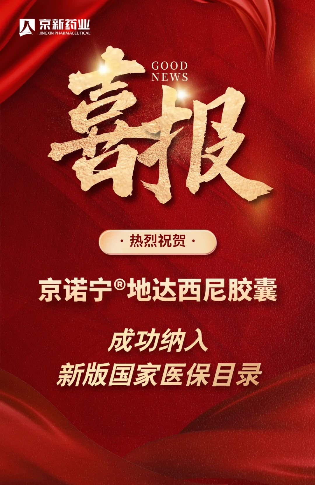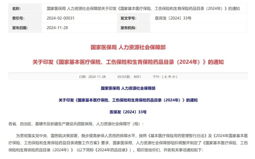 11月28日,国家医保局公布2024年国家医保药品目录调整结果,京新药业1类创新药京诺宁?地达西尼胶囊通过国家医保谈判,首次纳入新版国家医保目录。