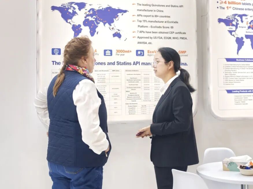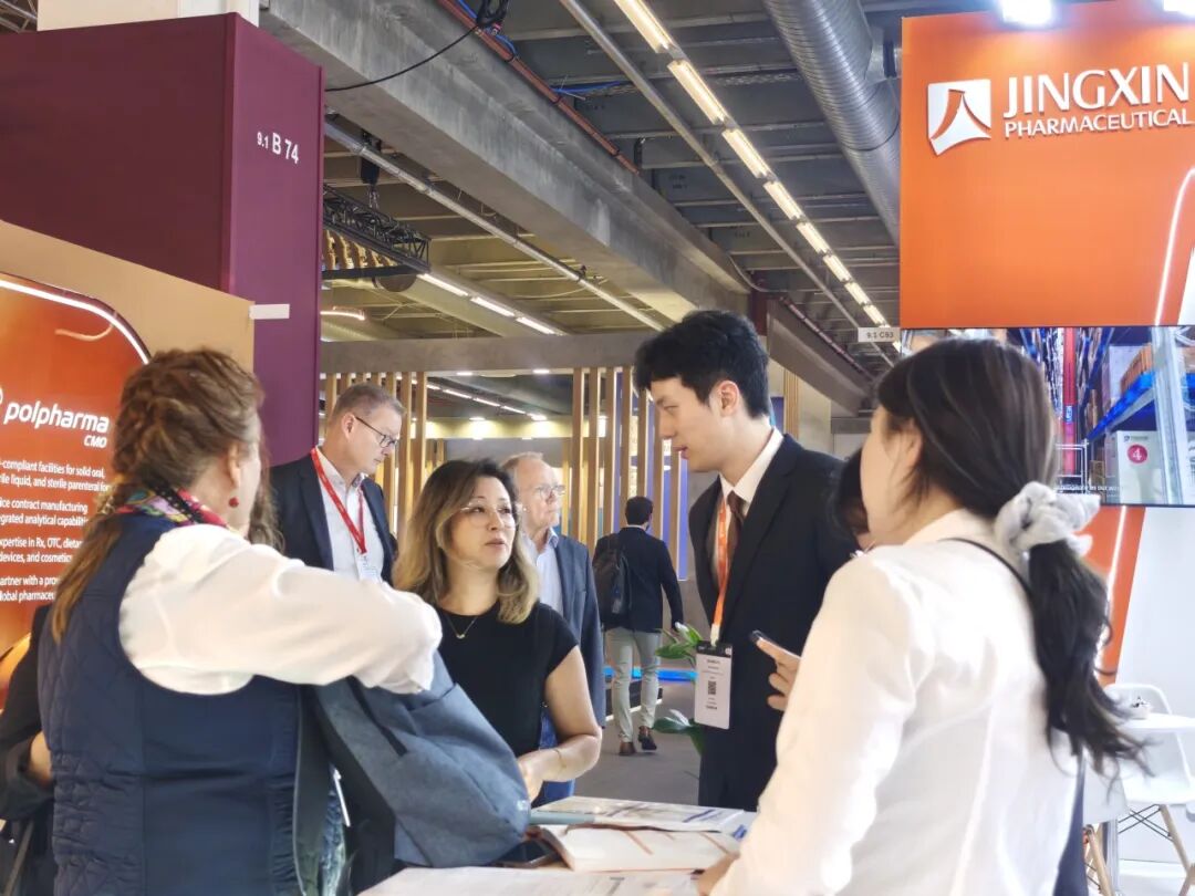 京新药业董事长吕钢亲自带领国际业务团队亮相本次展会,与来自全球各地的医药企业、客户代表进行了广泛而深入的交流。团队围绕全球医药行业发展趋势、政策导向、技术创新等内容展开多维探讨,并分享了京新在研发创新、智能制造、质量管控等领域的最新进展与核心成果,充分展现了中国药企的实力与魅力。