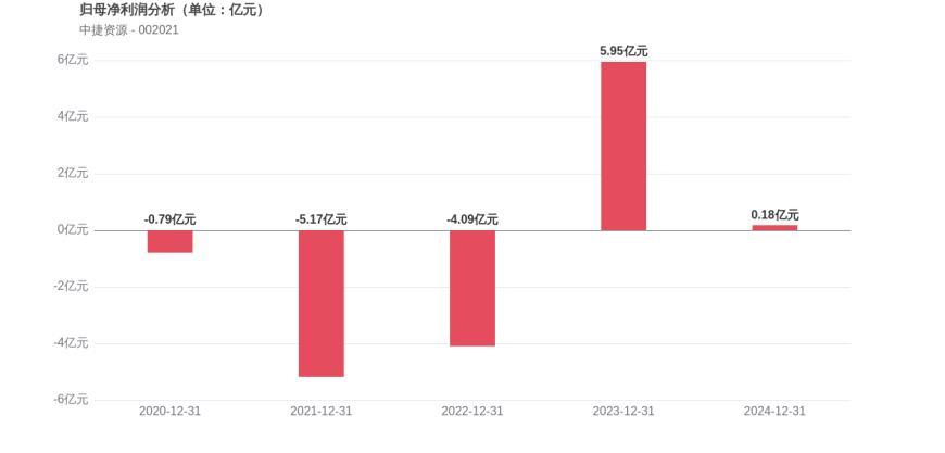 利润角度分析,2020年中捷资源实现归母净利润-0.79亿元,2024年0.18亿元。公司从亏损状态逐步实现扭亏为盈。