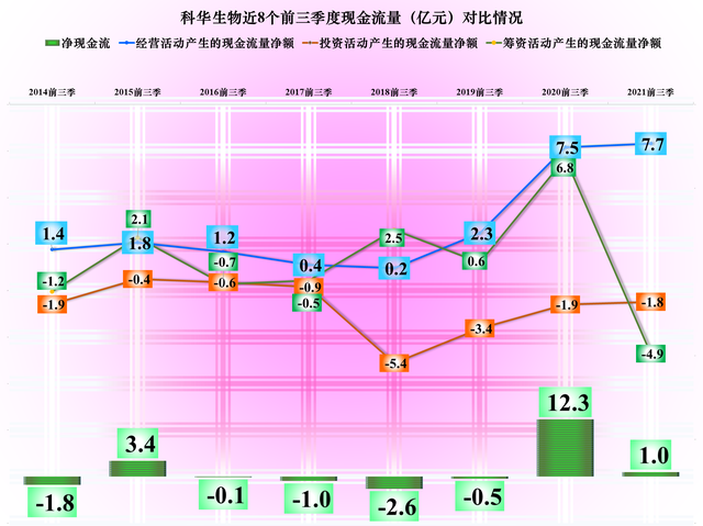 科华生物的净现金流情况各期差异较大,我想是在财务计划等的落实中,多次受到偶然事件影响的表现。特别是2020年前三季度,突然就净流入了12.3亿的净现金。