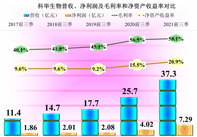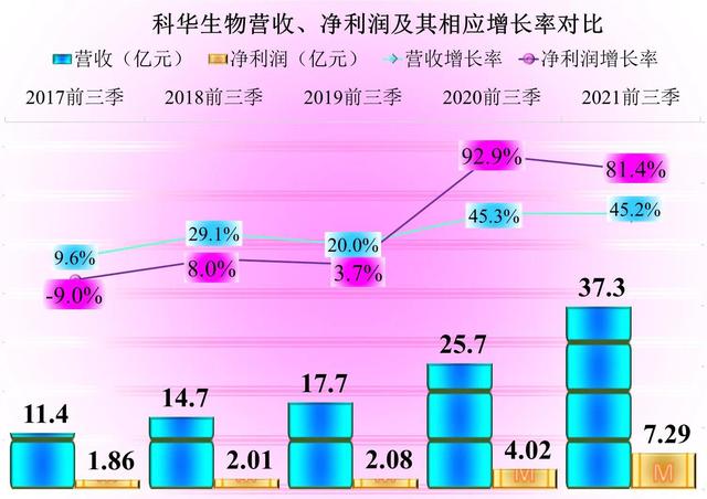确实近两年前三季度,科华生物的营收、营收增长率和净利润如同坐上了火箭一样,真的起飞了,位置是从一个右上角再突破至下一个右上角。