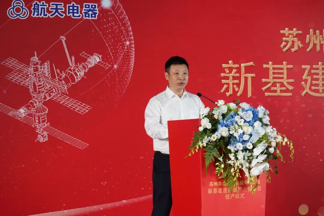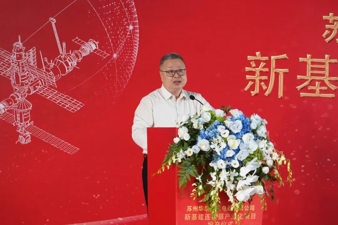 杨勇代表苏州华旃致辞,向各位领导、来宾表示热烈的欢迎和衷心的感谢,向为新厂房建设付出辛勤努力的全体员工及所有参与建设的合作伙伴表示崇高的敬意和诚挚的感谢。杨勇指出,新基建厂房的顺利投产,标志着苏州华旃在硬件设施上的全面升级,也意味着苏州华旃在产能提升、技术创新、产品研发、市场开拓等方面将迈出更加坚实的步伐。推进实施“新基建连接器产业化项目”是苏州华旃落实“十四五”规划目标,加快建设国内一流、国际领先高科技连接器企业的重要举措。项目总投资3.95亿元,新建厂房面积约4万平米,拟建设新产线9条,预计新增年产能3976.2万套,将有力巩固并提升苏州华旃在新能源、新一代信息技术、工业大数据、智能网联、商业航天等重点领域的技术及生产领先地位。
