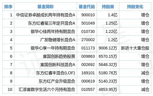 根据数据显示,持有分众传媒最多的基金为中信证券卓越成长两年持有混合A,持有1.4亿股,较之上个季度增加29.4%。持股排名如下: