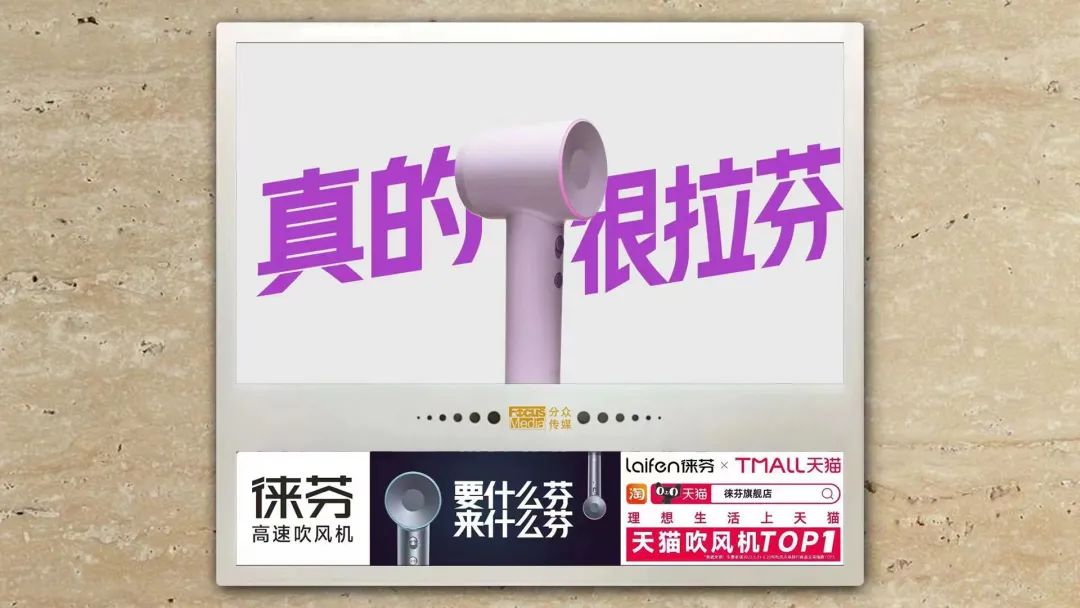 红制作的“标杆级”制作水准,协同分众传媒全面直接触达城市主流消费者的传播渠道,将助力徕芬品牌形象传播穿透信息壁垒,高效进入目标消费者的生活、消费场景中。