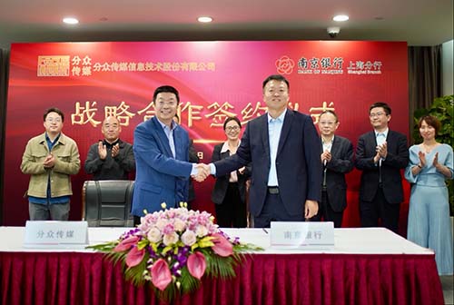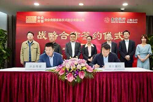 梁长玉报道 11月4日,南京银行上海分行与分众传媒信息技术股份有限公司签署战略合作协议。南京银行上海分行、分众传媒领导出席签约仪式。