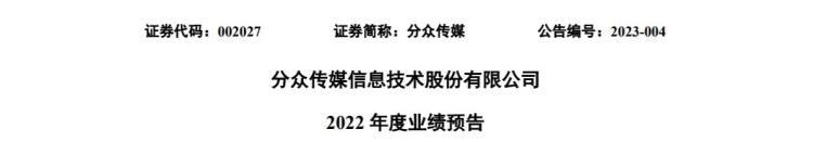 分众传媒(002027)1月20日晚间发布业绩预告,预计2022年净利27.7亿元-28.5亿元,同比下降52.98%-54.30%。
