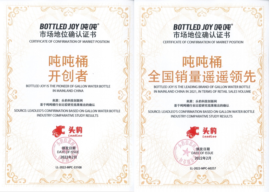 2021年,淘宝官方将吨吨桶直接作为一个新的水杯类目,并将吨吨品牌的产品图作为水杯的二级搜索类目图,这是近十年内极少出现过的将产品直接定为品类。在今年刚过去的618期间,吨吨BOTTLED JOY斩获京东和天猫平台保温杯榜单第一名,抖音、天猫太空杯热卖榜单第一名;京东平台618前1小时成交量同比上涨2034%,展现新锐水具品牌的强劲实力。