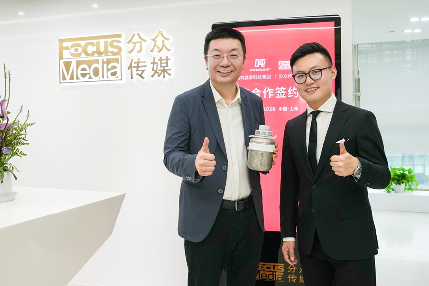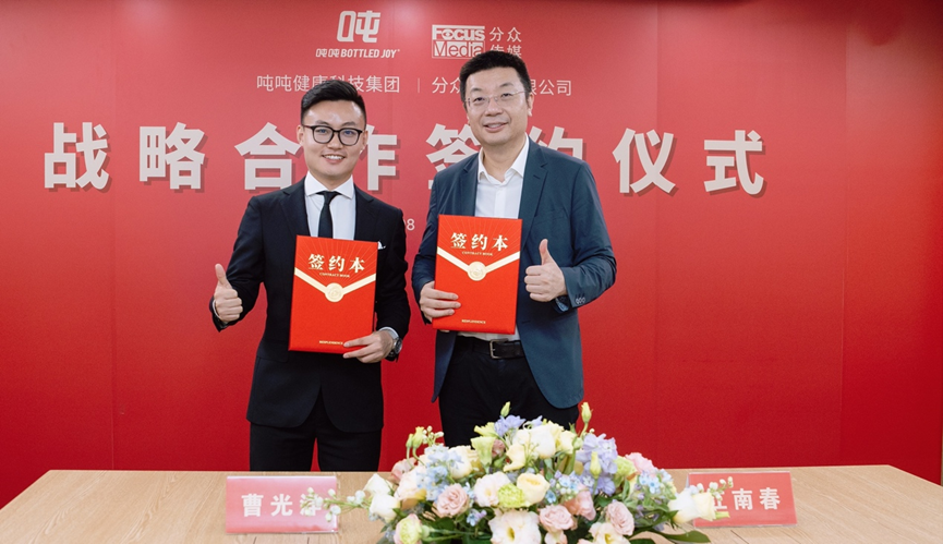 7月8日,吨吨健康科技集团与分众传媒正式签约战略合作,共同助力线下传播,全面提升吨吨BOTTLED JOY品牌影响力。吨吨健康科技集团CMO曹光洋与分众传媒董事长江南春出席签约仪式。
