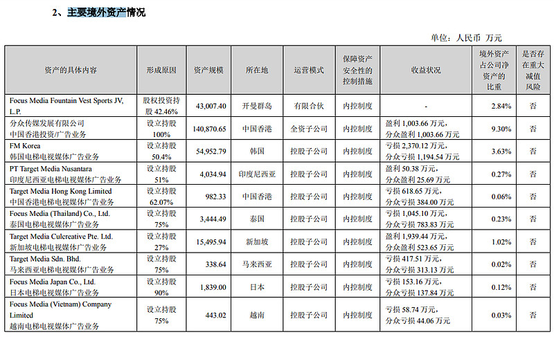 上表是23年中报中的分众主要境外资产情况,整体来说显然还在投入期,而未到收获期。除香港、印尼、新加坡小幅盈利外,其余韩国、泰国、马来西亚、日本和越南均为小幅亏损。