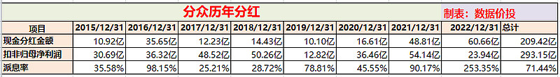 而从2015年至2022年的累计数据来看,8年间分众累计赚到了293.15亿扣非归母净利润,而累计现金分红金额达到了209.42亿,累计派息率为71.44%;也已是一个相当高的派息率;