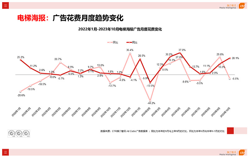 刊例价的数据是公开且容易查到的,央视CTR每月会定期发布,其中分众主业所对应的电梯LCD和电梯海报确定都是两位数以上增长的: