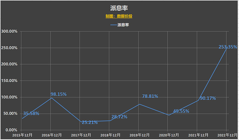 从上面的图表可见,按照扣非归母净利润计算的派息率,21年为90.17%,22年算上特别派息达到了253.35%,实际上已经是连续两年超过80%了;