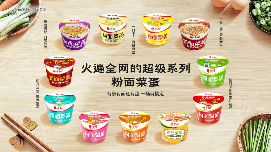 杨掌柜粉面菜蛋自2016年诞生以来,凭借对传统泡面速食痛点的敏锐洞察,创新性地将粉、面、菜、蛋巧妙融合,开创了粉面菜蛋这一全新品类。凭借“粉面菜蛋连续八年全国销量第一”和“金汤肥牛口味粉面菜蛋全国销量遥遥领先”的卓越成绩,杨掌柜不仅在校园市场占据主导地位,更凭借持续的创新和品质坚守,赢得了消费者的广泛信赖。