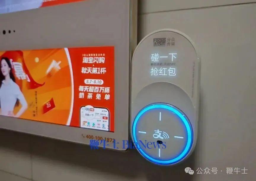 此前支付宝宣布与分众传媒合作,在电梯里推广“支付宝碰一下”。