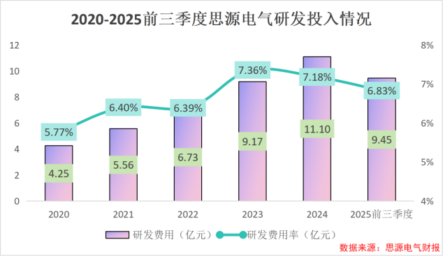 公司长期坚持“超前投入”的研发理念,过去五年,公司累计研发投入超35亿元,2025年前三季度研发投入达到9.45亿元。研发费用率从2020年的5.77%上升到2024年的7.18%。
