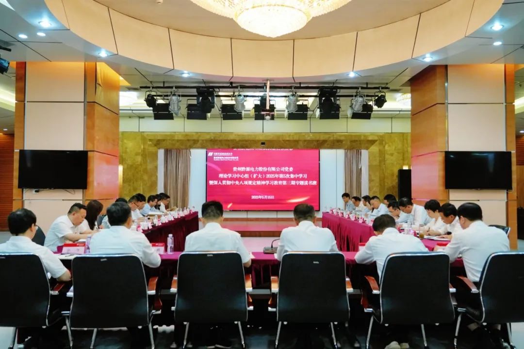 5月15日,公司党委理论学习中心组举行2025年第5次党委中心组(扩大)集中学习暨深入贯彻中央八项规定精神学习教育第三期专题读书班,集体观看微视频《八项规定改变中国》,集中学习《习近平关于加强党的作风建设论述摘编》、违反中央八项规定及其实施细则精神典型案例,深刻领会其精髓要义,深化以案为鉴、以案促改,引领带动公司系统学习教育走深走实,以作风建设新成效为加快建设以水电为基础的国际一流“零碳”综合能源上市公司提供有力保障。公司党委书记、董事长罗涛主持会议并作总结讲话,党委委员李朝新、王贵来、盛友鹏、胡佐君、金冬分别作交流发言。