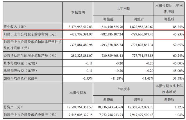 8月30日晚,美年健康发布半年报,公司实现营业总收入33.77亿元,较上年同期增长85.25%;净利润-4.27亿元,同比增长45.83%,亏损有所缩窄。另外,现金流净额为-2.89亿,同比增长60%。