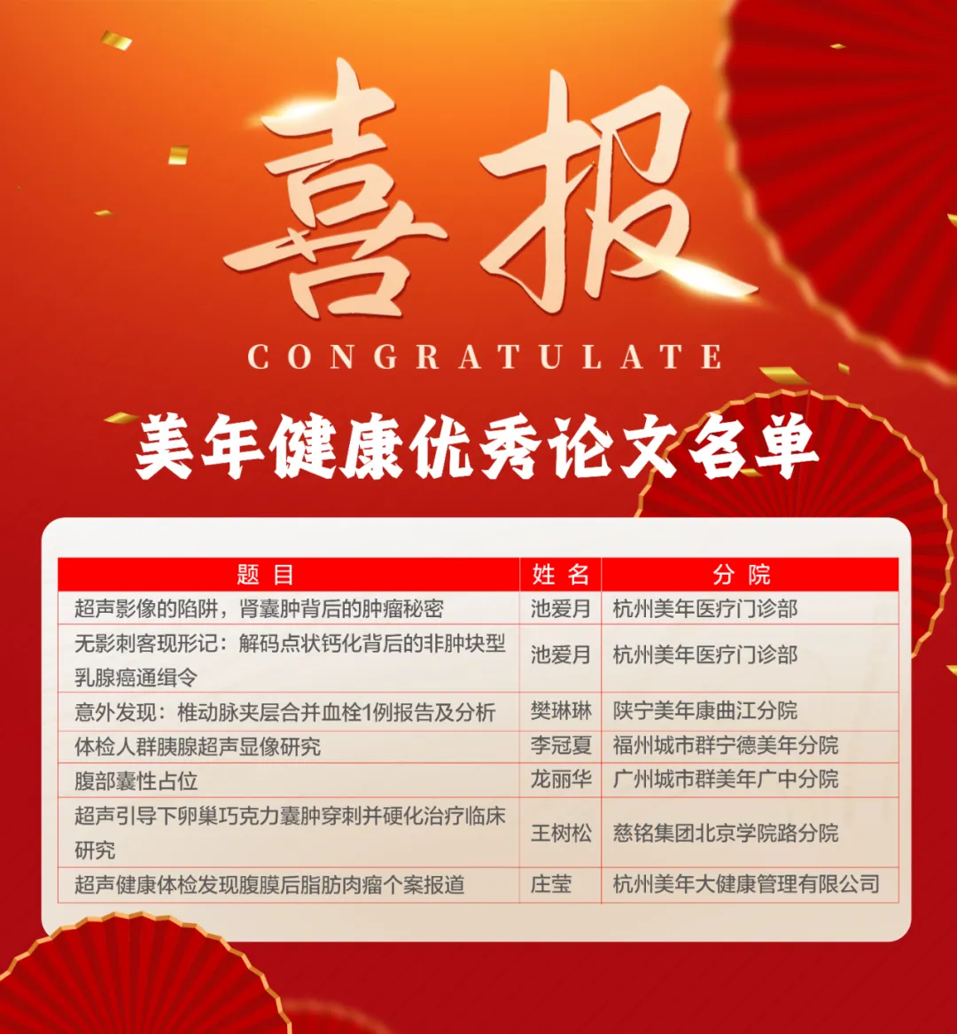 美年健康的专家团队在学术研究方面也取得了显著成果。在此次学术年会上,美年健康的6名专家的7篇论文从众多参选作品中脱颖而出,获选为优秀论文。这一成绩的取得,充分彰显了美年健康在超声领域的科研实力和创新能力,体现了美年健康专家团队在临床实践中的深入思考和积极探索,为推动超声学科的学术进步贡献了重要的智慧和力量。