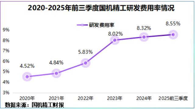 2020年至2024年,公司研发费用率从4.52%一路提升至8.32%。对于一个制造业公司来说,这是一个相当高的投入水平。
