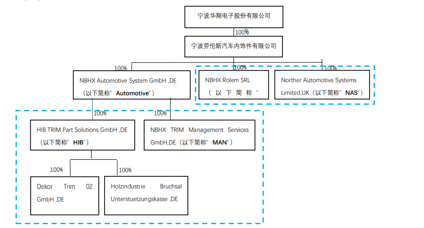 据介绍,宁波华翔欧洲业务主要由德国Automotive的控股子公司HIB和MAN及其子公司、罗马尼亚Rolem和英国NAS公司承担,主要产品为乘用车内装饰条,主要客户为德国大众、奥迪、宝马、奔驰、沃尔沃等整车厂,分别由2012年收购德国SELLNER、2013年收购HIB和2016年收购宁波劳伦斯所形成。