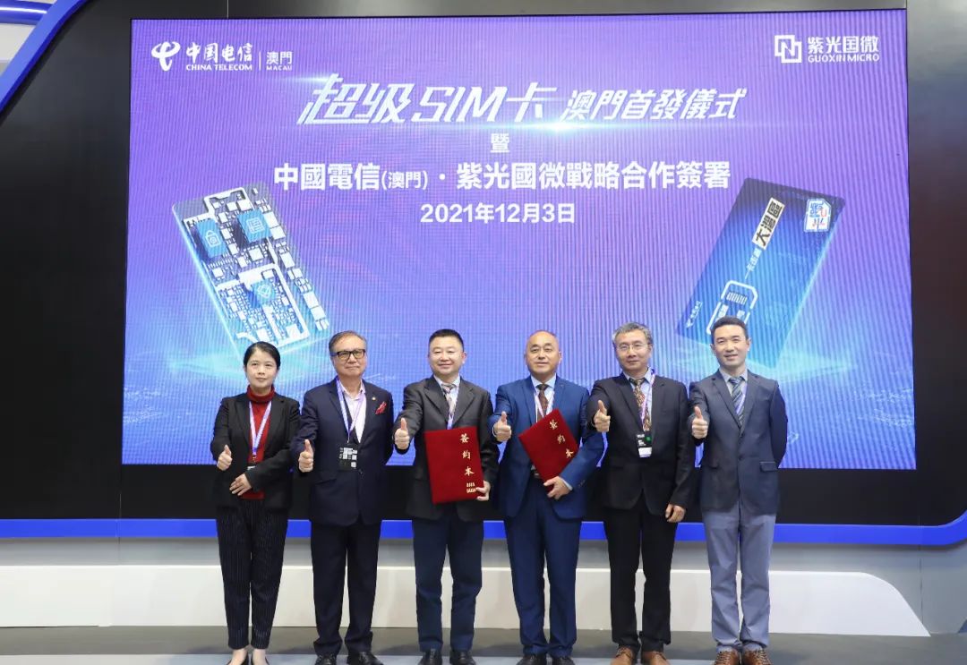 12月3日,超级SIM卡澳门首发仪式暨中国电信(澳门)与紫光国微战略合作签署仪式在澳门国际科技创新博览会上举行。未来双方将持续围绕智慧芯片展开合作,共拓5G智慧应用生态,服务全球用户。中国电信(澳门)有限公司董事陈武、副总经理宋彤;紫光国芯微电子股份有限公司高级销售副总裁韩明利、生态合作部副总经理卢哲等双方高层出席活动。