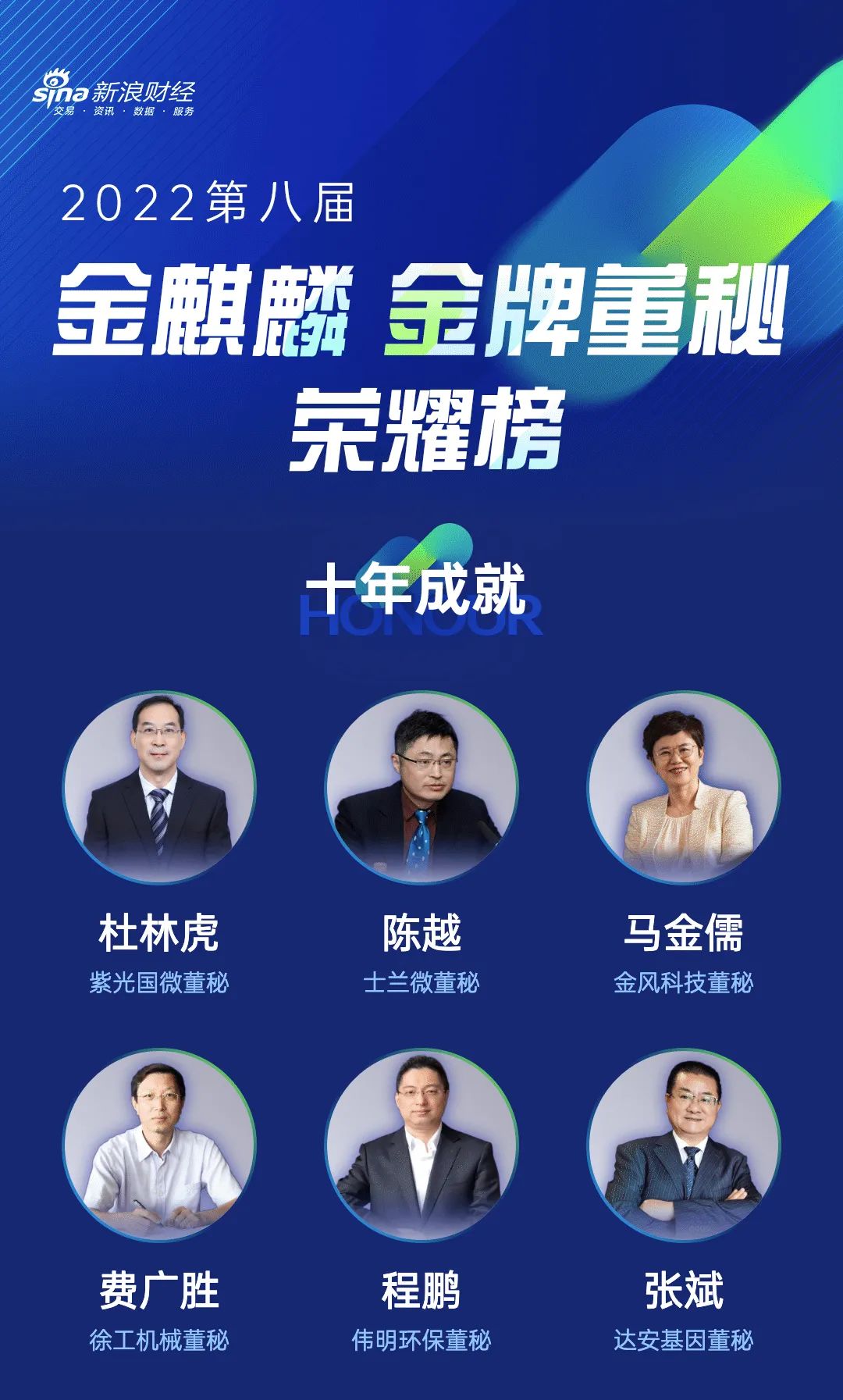 近日,由新浪财经主办的“2022年中国碳中和峰会暨第八届金牌董秘盛典”隆重召开。会上揭晓了“第八届金麒麟金牌董秘榜单”,紫光国微副总裁、董事会秘书杜林虎荣获金牌董秘“十年成就”奖。