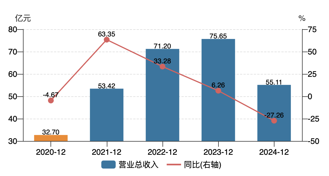 频繁的人事调整背后,紫光国微的业绩压力显而易见。1月中旬,公司发布了2024年度业绩快报,报告显示,公司实现营业收入55.11亿元,同比下降27.26%;归母净利润11.91亿元,同比下降52.99%。