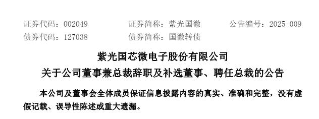 此外,紫光国微还将于2月28日召开2025年第二次临时股东会,审议《关于补选公司独立董事的议案》和《关于补选公司非独立董事的议案》。
