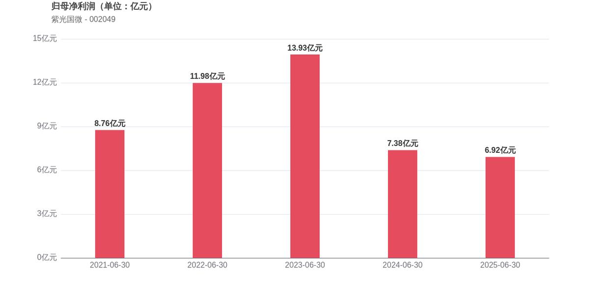 在2025年上半年,紫光国微的经营业绩呈现营收增长但净利润下滑的态势,实现营业收入30.47亿元,同比增长6.07%,归母净利润6.92亿元,同比下滑6.18%。