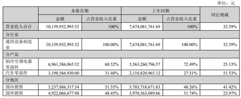 三花智控于近日披露半年报,半年报显示,2022年上半年,三花智控实现营收101.6亿元、净利润10.03亿元、扣非净利润10.3亿元,均呈双位数增长。