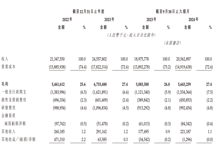同时,公司需投入研发费用维持竞争力。招股书显示,2022年、2023年以及2024年9月30日,三花智控研发费用分别为9.89亿元、10.97亿元、9.92亿元,分别占同期收入的4.6%、4.5%、4.8%。