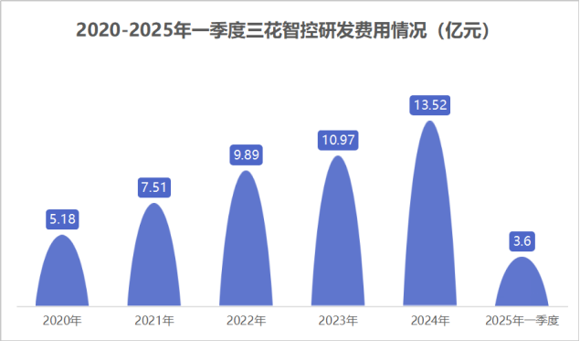 2020-2024年,三花智控研发费用从5.18亿元飙升到13.52亿元。目前,公司在研项目包括第三代电池冷却器、间冷式热泵模块、C型截止阀等。