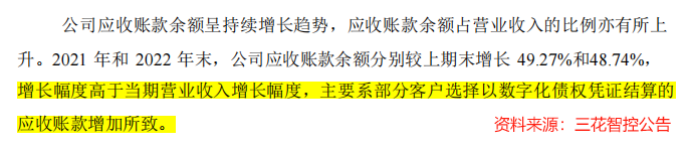 2020-2022年,客户采用较多此类凭证结算,从而使得应收账款因凭证未到期形成阶段性规模膨胀,从而导致其增速显著高于营收增速。