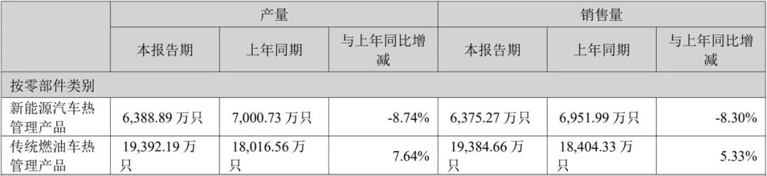 作为全球市场领先的热管理系统零部件供应商,目前,三花智控相关的多款产品已进入大部分头部新能源汽车企业的供应链进行批量供应。然而,数据显示,2025年,公司新能源汽车热管理产品的产、销量同比均出现下滑,产量同比下滑8.74%至6388.89万只,销售量同比减少8.30%至6375.27万只;同年,公司境内地区的汽车零部件产、销量亦分别较上年同期减少0.66%、1.39%。