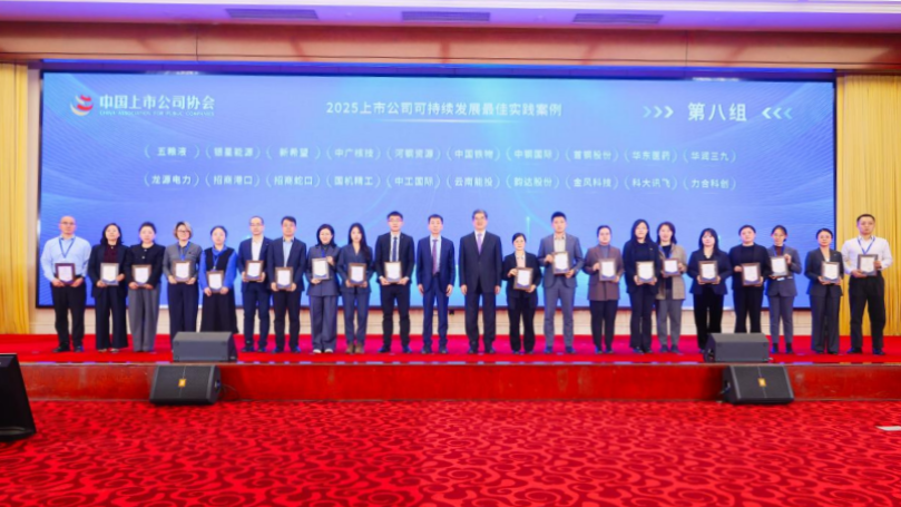 中国上市公司协会正式发布 2025 年上市公司“董事会最佳实践案例”及“可持续发展最佳实践案例”评选结果。中上协“董事会最佳实践”评选是资本市场治理领域的权威标杆,自 2023 年启动以来已成功举办三届。中工国际凭借卓越的公司治理能力,连续第三年斩获“董事会最佳实践案例”荣誉;同时,公司聚焦 ESG 治理的实践成果——《以 ESG 治理为根基以“四绿”引擎为驱动助力上市公司高质量可持续发展》,成功入选“可持续发展最佳实践案例”,实现双项殊荣加身。公司董事会秘书芮红出席会议,并代表公司领取相关奖项。