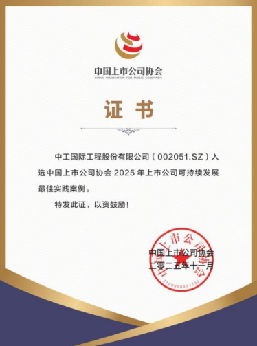 此次系列评选活动旨在表彰在董事会治理和可持续发展方面表现突出的上市公司,发挥上市公司董事会先进治理模式示范作用,提升公司治理效能;充分展现上市公司ESG最佳实践做法,彰显发展韧性与竞争力,助力上市公司实现高质量、可持续发展。本次活动在沪深北三市5,000多家上市公司中,评选出2025上市公司董事会最佳实践案例240篇,占全部上市公司的比例不到5%;中工国际本次摘得双重最佳实践殊荣,充分体现出公司科学、理性、高效的董事会治理水平,以及在成为具有国际竞争力的绿色工程引领者道路上的扎实进展。